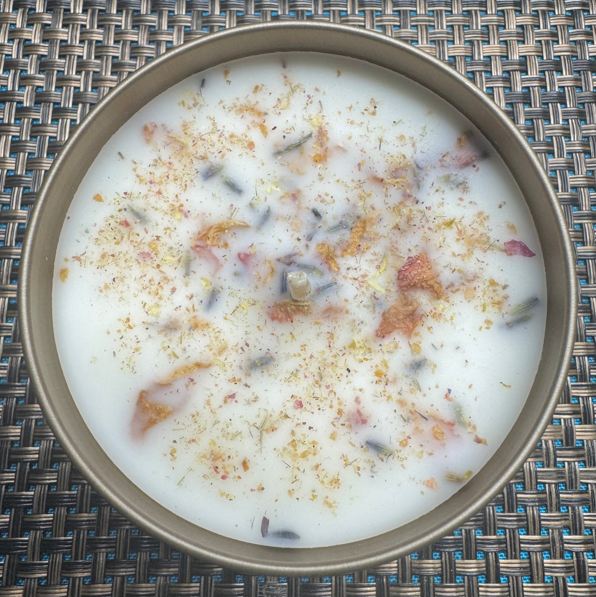 Handmade with soy wax, dried flowers and herbs and fragrance